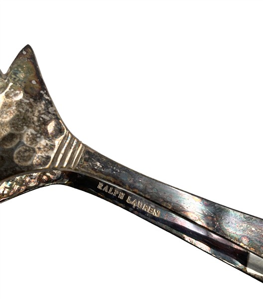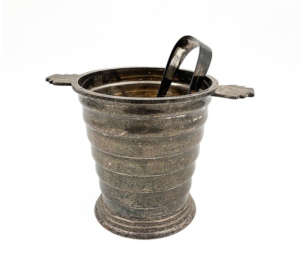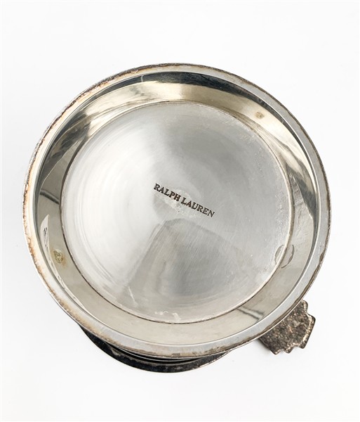 Ralph Lauren. Portaghiaccio in metallo argentato con corpo sbalzato e pinza (h. cm 14) (difetti)