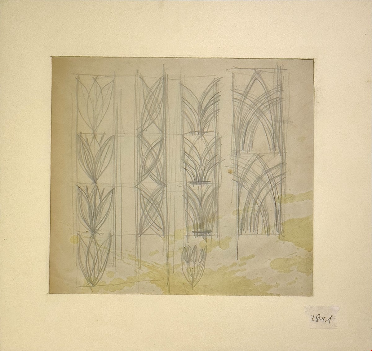 Fortunato Depero, Studio per Fasce Decorative, 1953/54, Matita su carta, cm 30x28, Studio per fasce decorative delle porte della Sala del Consiglio Provinciale del Comune di Trento, Archivio Catalogo Generale Regionale delle Opere dell'Artista, Cornice non inclusa
