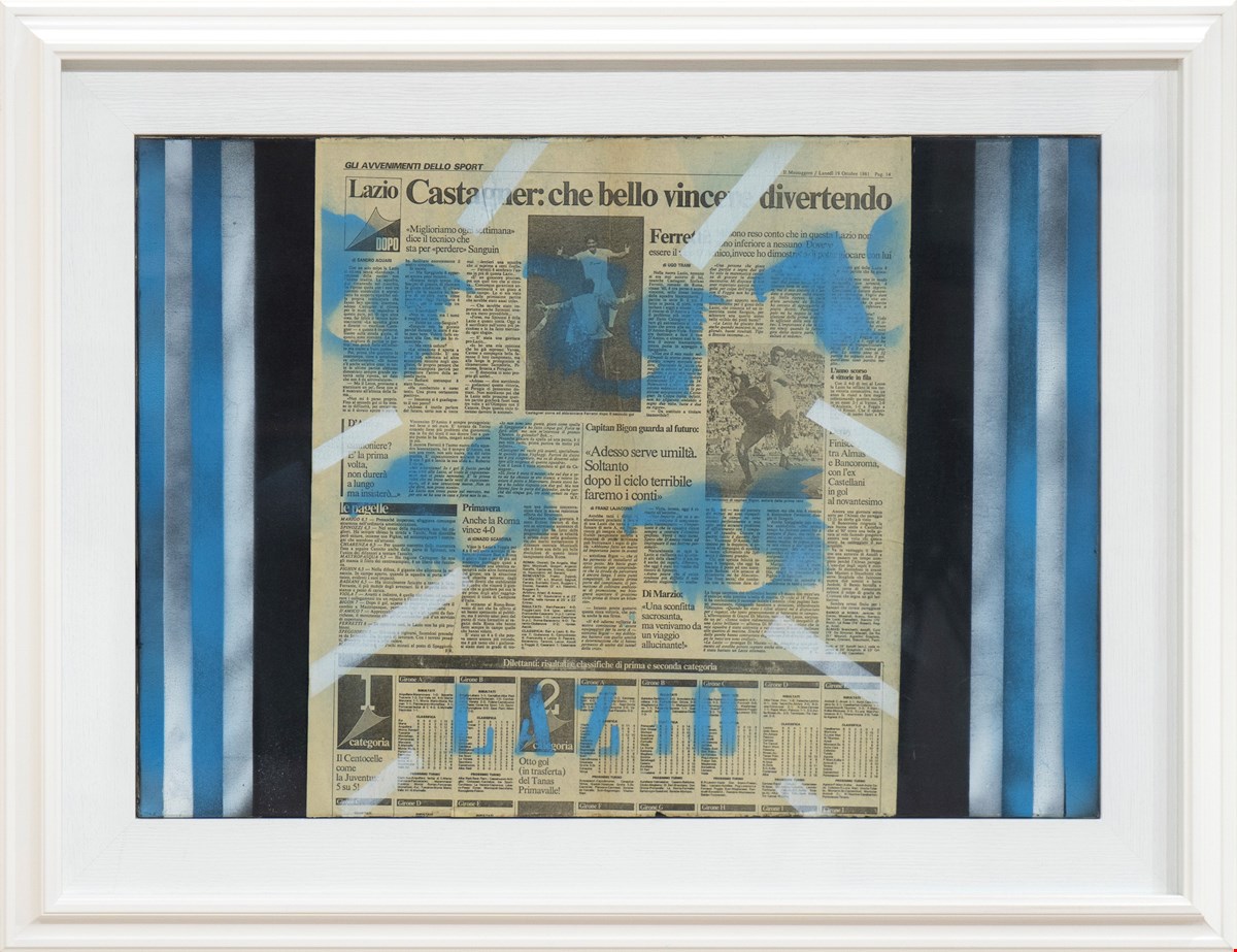 Franco Angeli, Lazio, 1981, Smalto e collage di foglio di giornale su tela,...