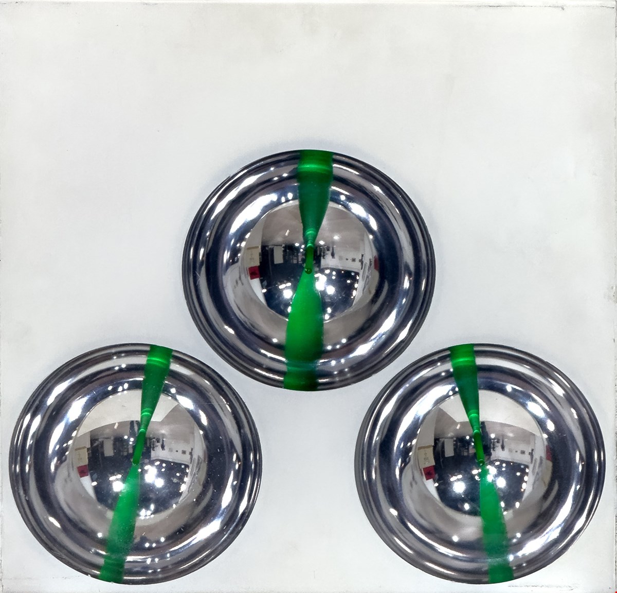 Franco Costalonga, Oggetto Cromocinetico OCTVB, 1972, Assemblaggio 3 semisfere in box, cm 35x35x8.5, Autentica a cura dell'artista, Pubblicazione su Catalogo Martini Studio d'Arte