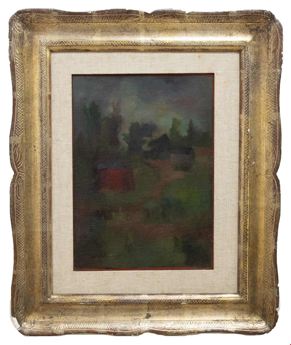 Giovanni Omiccioli, Paesaggio con casa rossa, anni Cinquanta, Olio su tela, cm 36x26, Cornice in omaggio