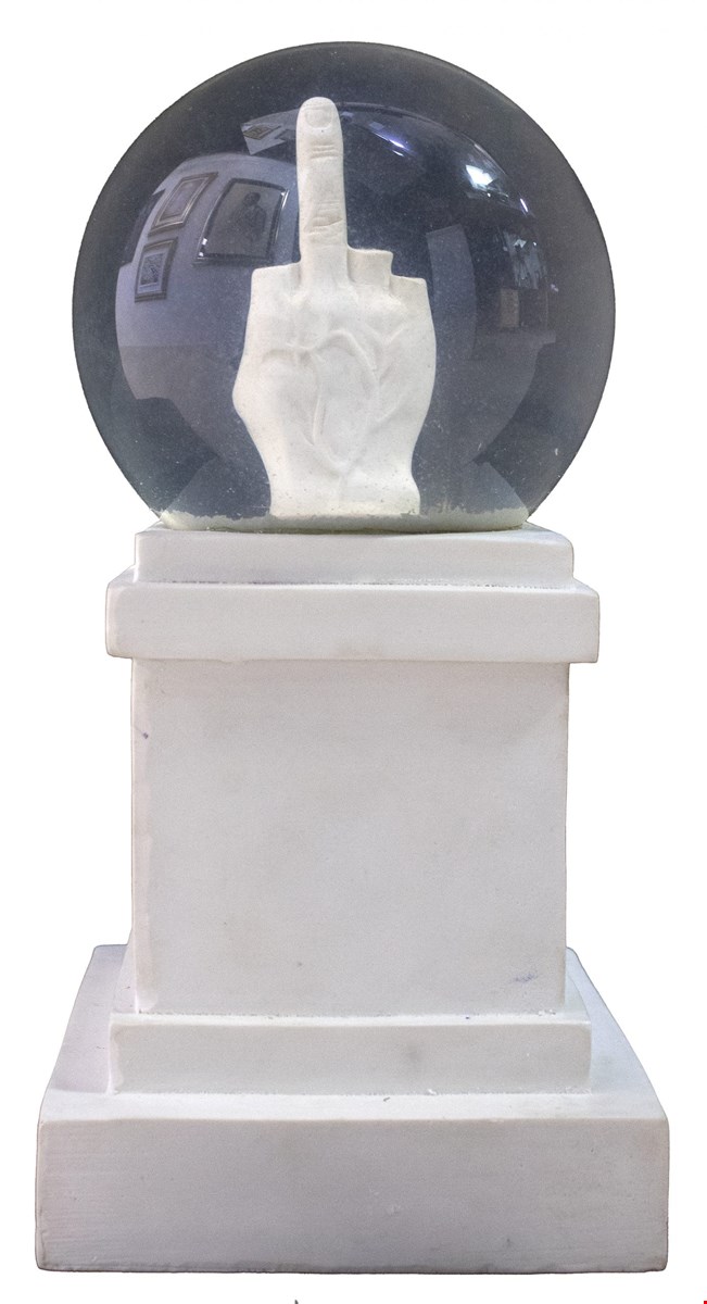 Maurizio Cattelan L.O.V.E. Boule de neige, 2015, Scultura in vetro e resina, cm 28x12, Tiratura in 2000 esemplari non numerati