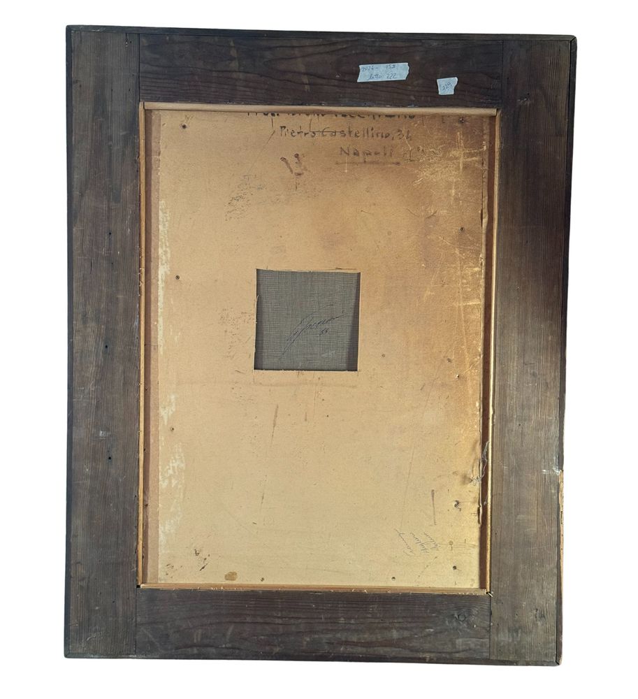 Dipinto olio su pannello, periodo XX secolo scuola Italiana, raffigurante Ritratto di giovane. Dimensioni compreso cornice: 80x100 cm. Dimensioni interno cornice: 50x70 cm. Reca firma in basso a destra e autentica sul retro da artista non identificata. Opera in buone condizioni.