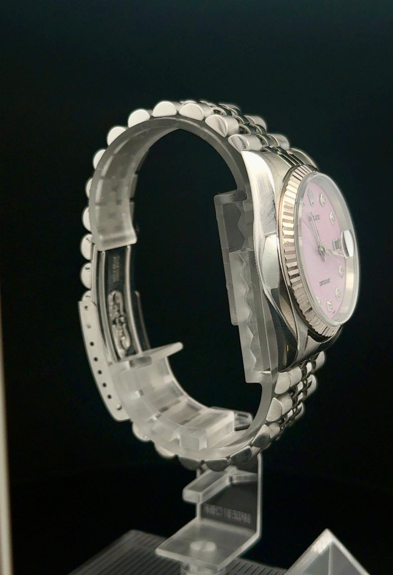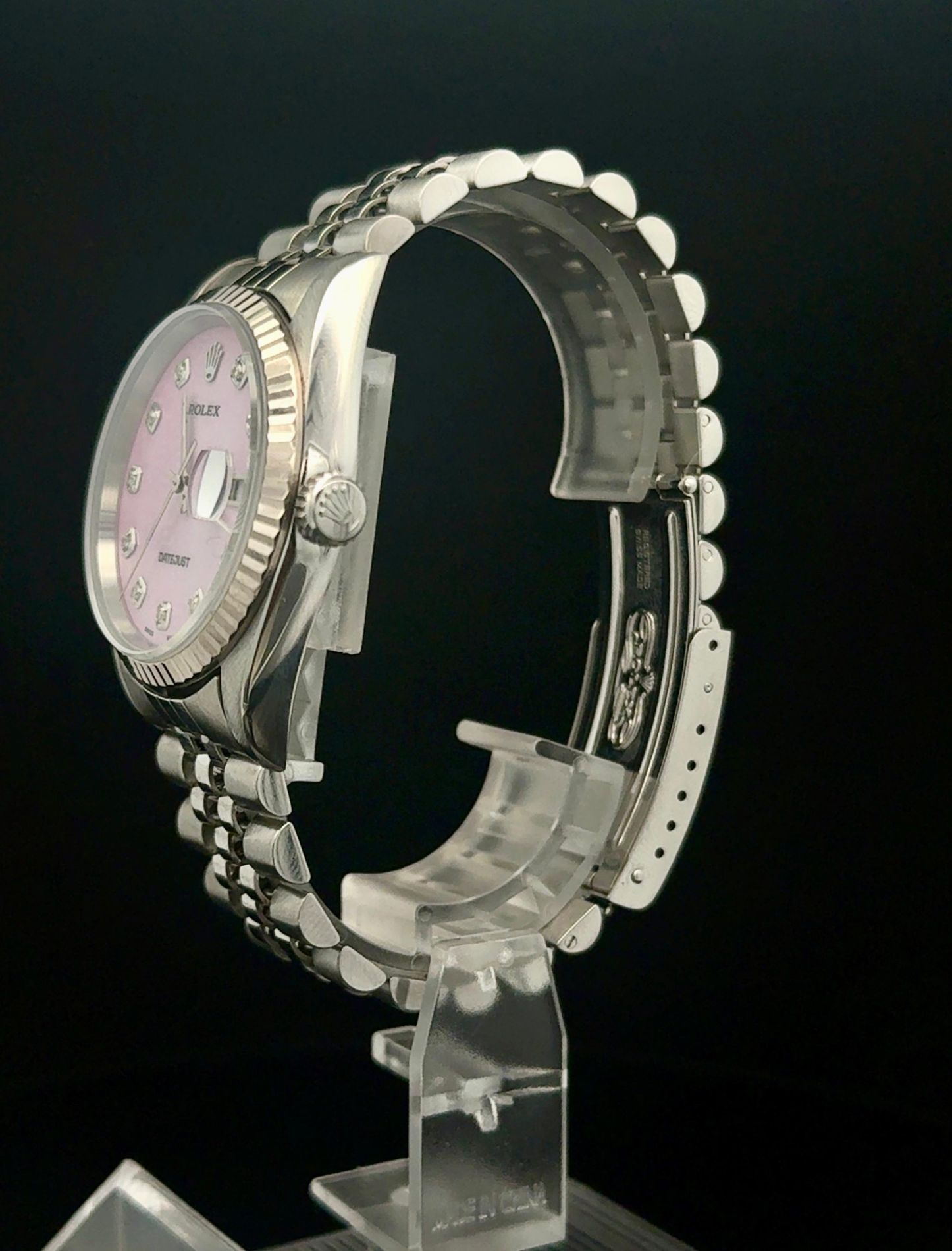 Marca Rolex Modello (Orologio) Datejust 36 Numero di referenza 16234 Carica Automatico Materiale della cassa Acciaio Materiale cinturino Acciaio Anno 2003 Quadrante aftermarket con diamanti Condizione Usato (Ottimo) L'articolo presenta segni di usura lievi, come ad esempio graffi leggeri, ma non percepibili al tatto. documenti originali Rolex, no box, la scatola viene utilizzata solo per fotografie non è in vendita Carica Automatico Cassa Materiale della cassa Acciaio Diametro 36 mm Impermeabile 10 ATM Materiale lunetta Oro bianco Vetro Vetro zaffiro Cinturino Materiale cinturino Acciaio Colore cinturino Acciaio Chiusura Déployante Materiale chiusura Acciaio