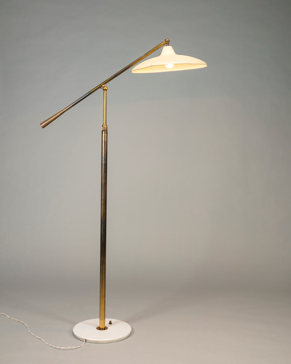 Produzione Stilnovostruttura in ottone, base in marmo e diffusore in alluminio laccato e satinato