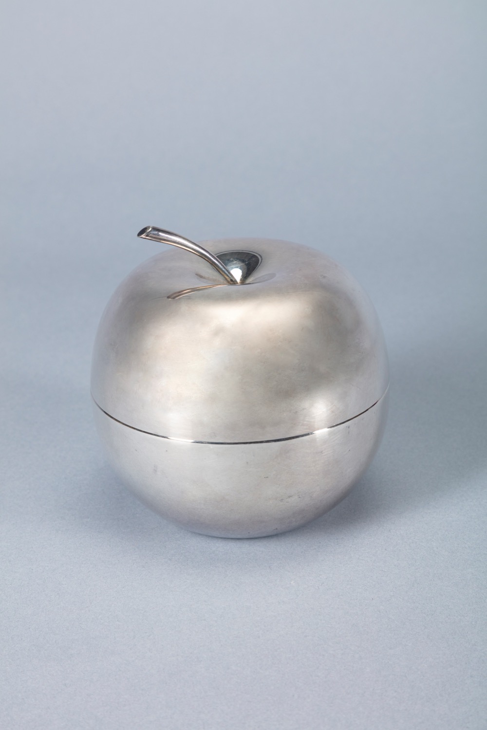 Marchio incusso.Contenitore con coperchio in metallo argentato.
