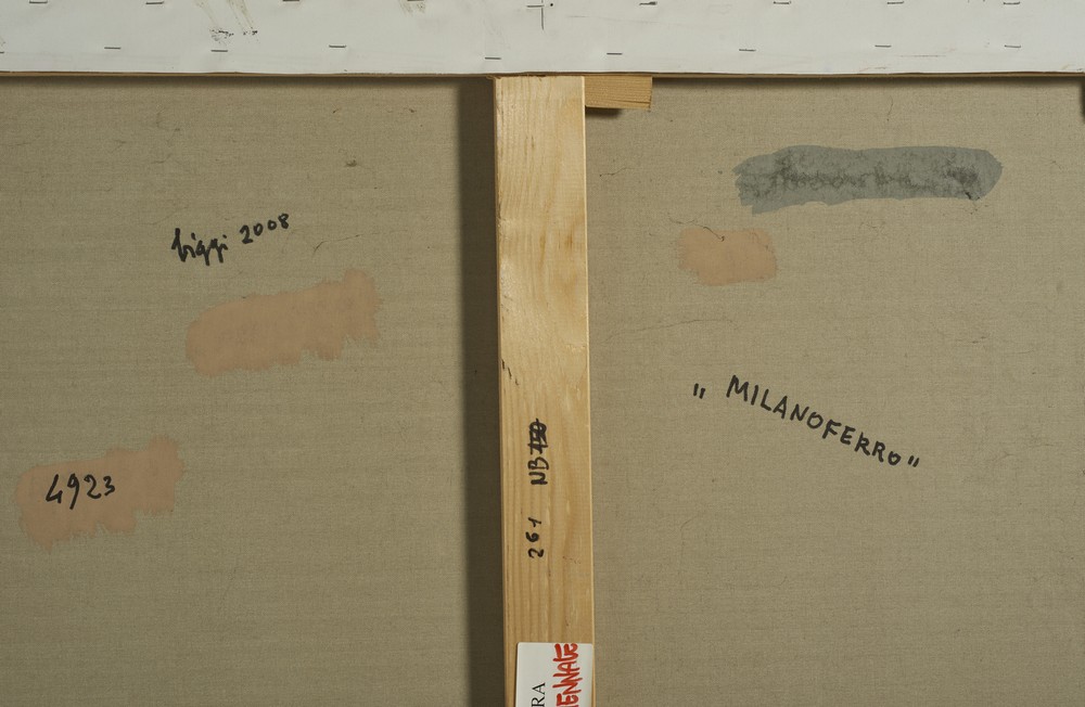 BIGGI GASTONE (1925 - 2014) MILANOFERRO. 2009. Idropittura su tela. Cm 160,00 x 100,00. sul retro: titolo, firma e data