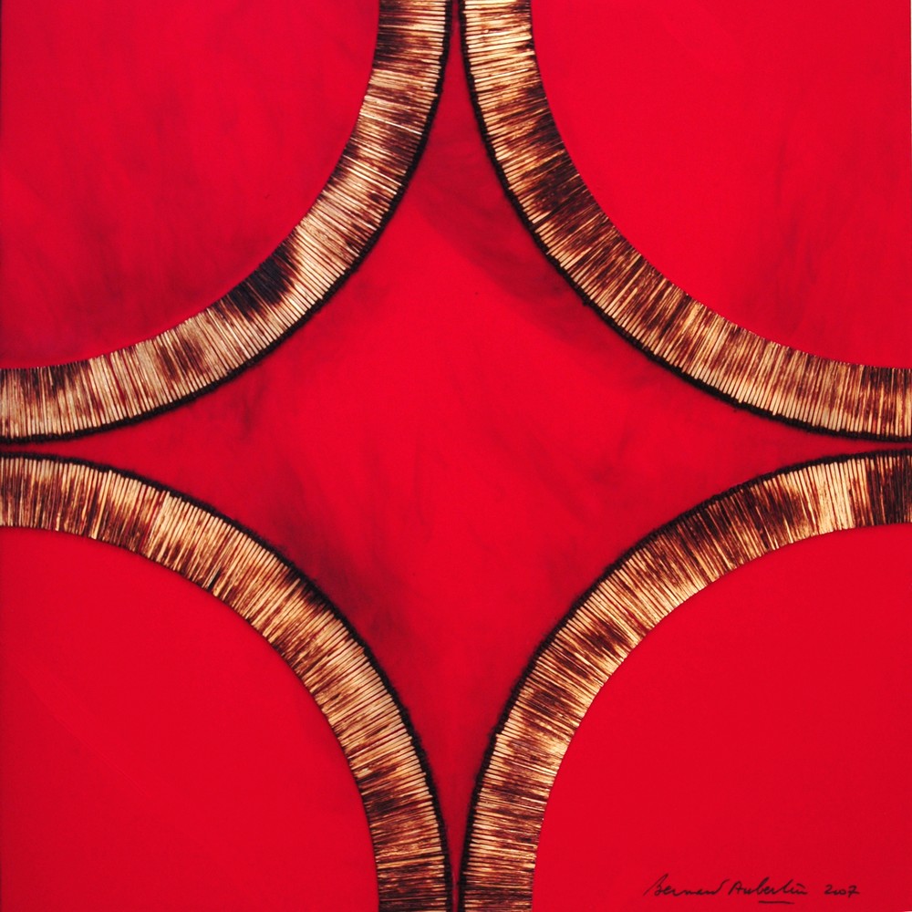 AUBERTIN BERNARD (1934 - 2015) DESSIN DE FEU CIRCULAIRE. 2007. fiammiferi bruciati su tavola. Cm 60,00 x 60,00. firma e data