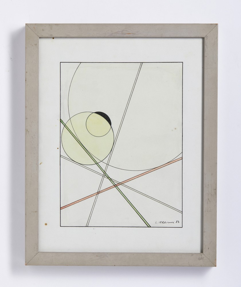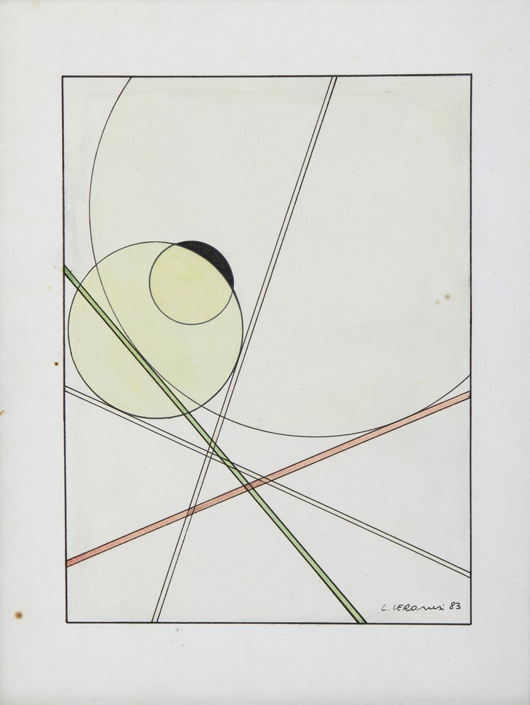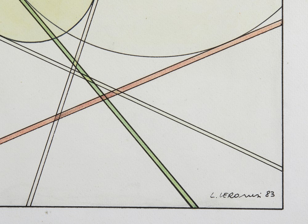 VERONESI LUIGI (1908 - 1998) COSTRUZIONI SULLE TANGENTI. 1983. acquarello su carta applicata su tela. Cm 25,00 x 32,20. firma e data