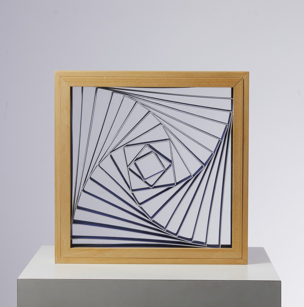 MASSIRONI MANFREDO (1937 - 2011) QUADRATI RUOTATI. 2000. cornice in legno e cartoncino. Cm 31,50 x 31,50. L'opera è accompagnata da autentica su fotografia a cura di Michele Massironi . Cornice presente