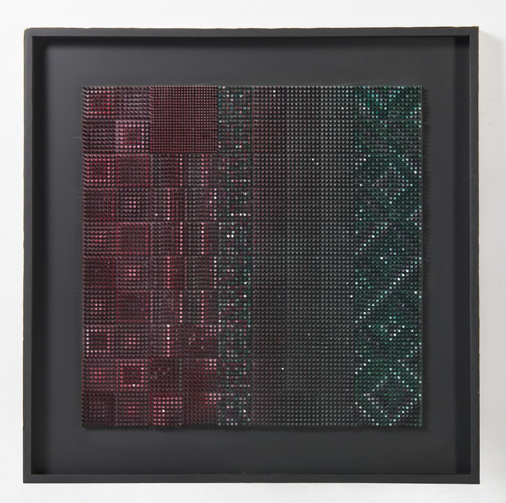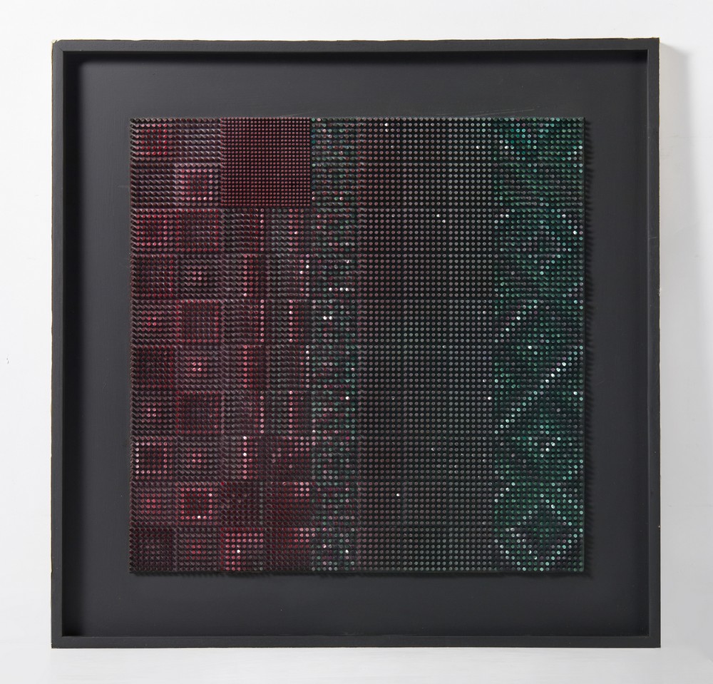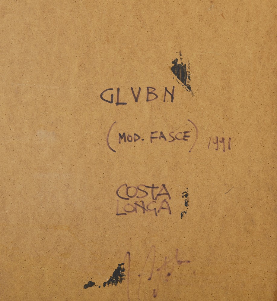 COSTALONGA FRANCO (n. 1933) GLVBN (MOD. FASCE). 1991. tecnica mista su tavola. Cm 80,00 x 80,00. sul retro: firma, data, titolo, timbro dell'artista. Cornice presente