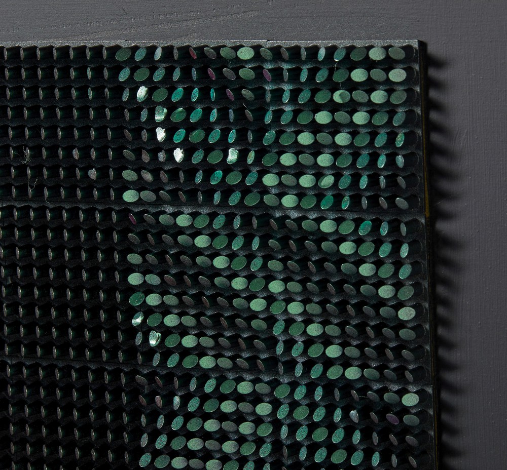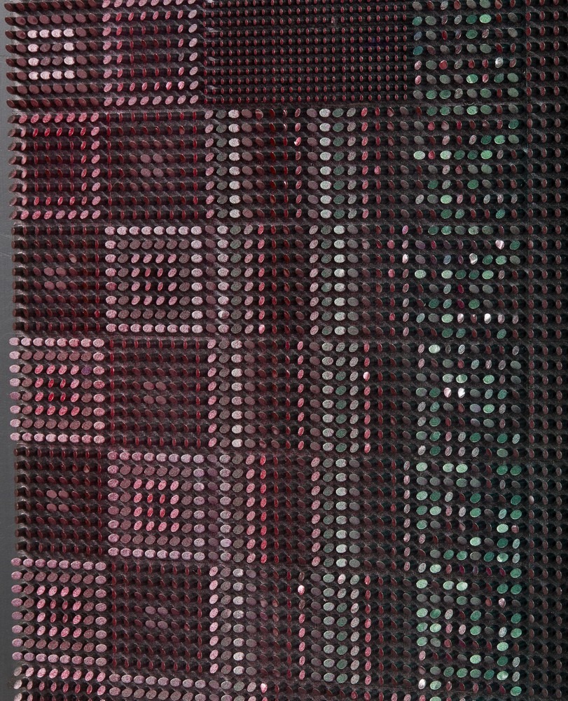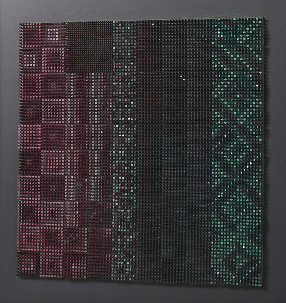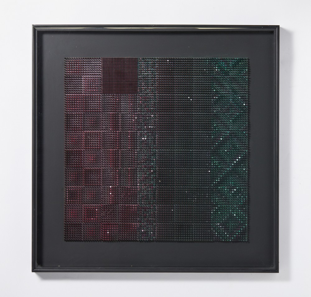 COSTALONGA FRANCO (n. 1933) GLVBN (MOD. FASCE). 1991. tecnica mista su tavola. Cm 80,00 x 80,00. sul retro: firma, data, titolo, timbro dell'artista. Cornice presente