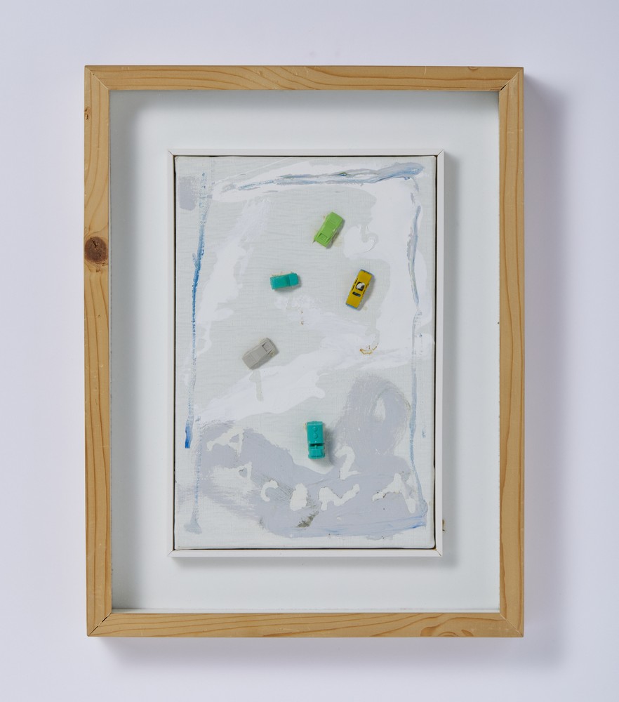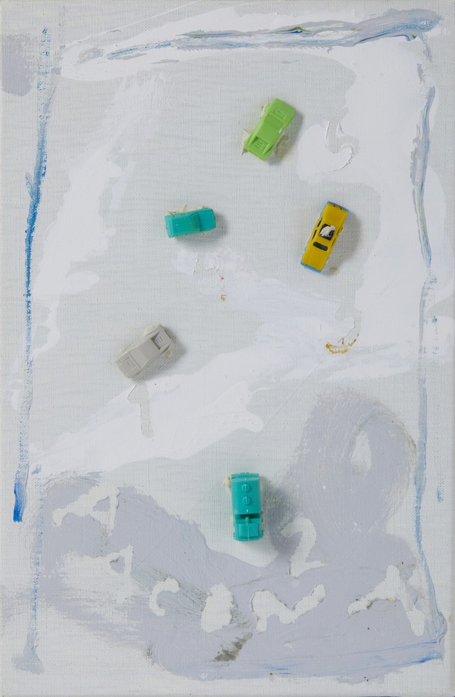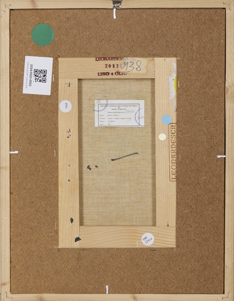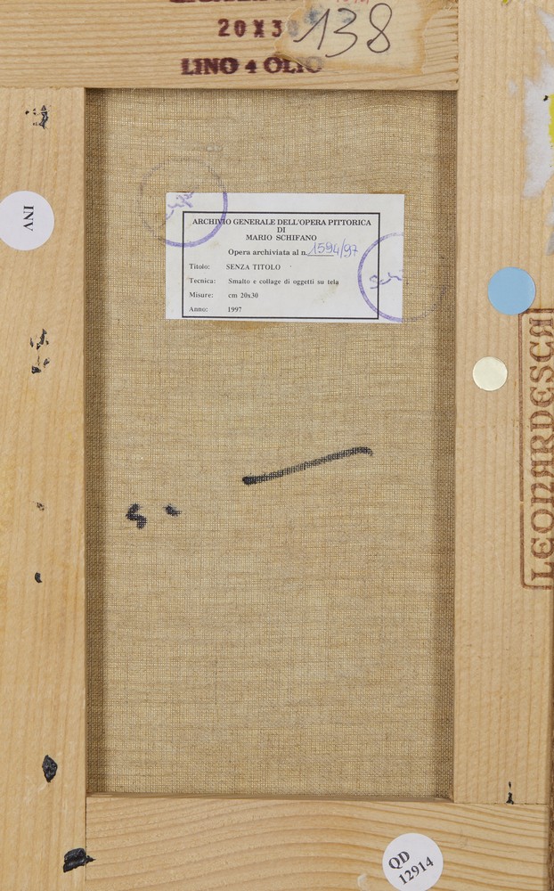SCHIFANO MARIO (1934 - 1998) SENZA TITOLO. 1997. smalto e collage di oggetti su tela. Cm 29,50 x 20,00. sul retro: firma