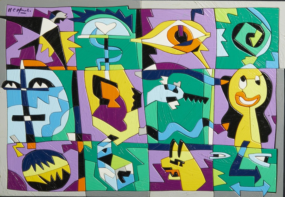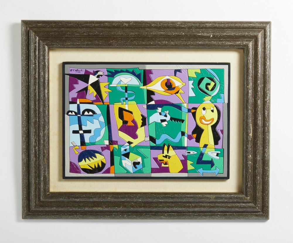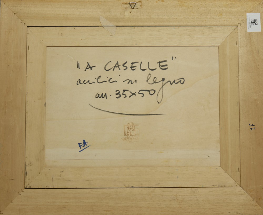 NESPOLO UGO (n. 1941) A CASELLE. Acrilico su legno. Cm 50,00 x 35,00. firma