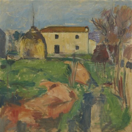 SOFFICI ARDENGO (1879 - 1964) PAESAGGIO TOSCANO, (1936). Olio su tela. Cm 70,00 x 70,00. sul retro: etichetta Galleria Marescalchi, Bologna