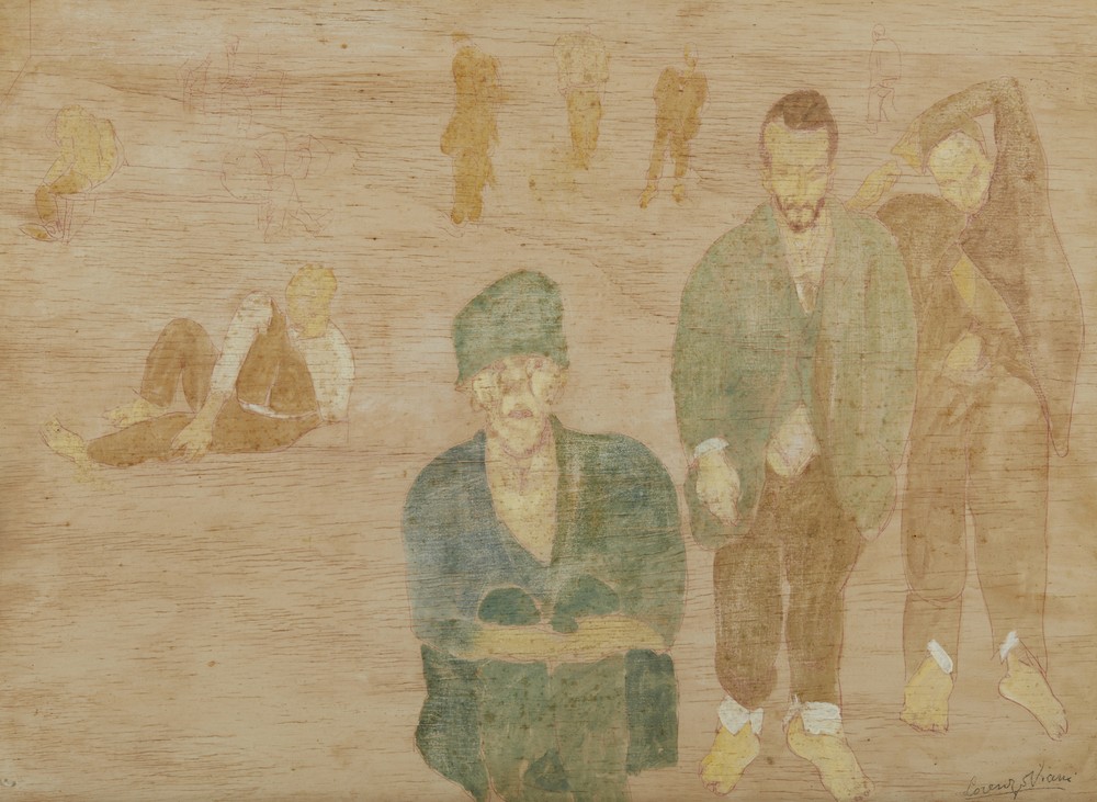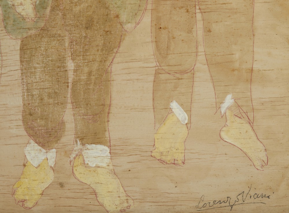 VIANI LORENZO (1882 - 1936) ANDRIONE INVERNALE (1933-1934). matita rossa e tempera su tavola. Cm 75,00 x 55,00. firma
