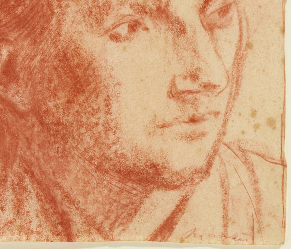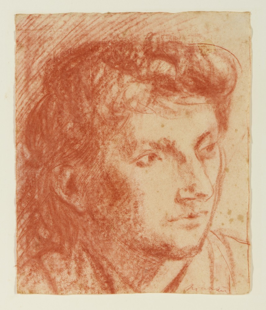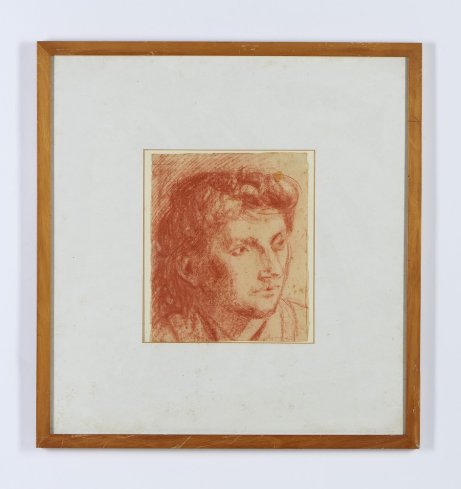 MANZU' GIACOMO (1908 - 1991) VISO DI DONNA . 1941. Sanguigna su carta. Cm 21,00 x 25,30. firma