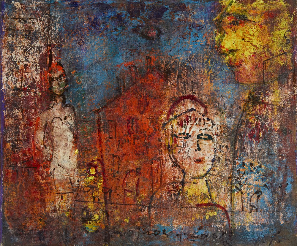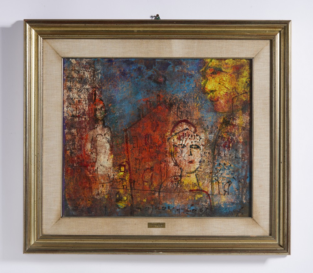 ROGNONI FRANCO (1913 - 1999) CITTA' DI NOTTE. 1969. Olio su tela. Cm 55,50 x 46,00. firma e data