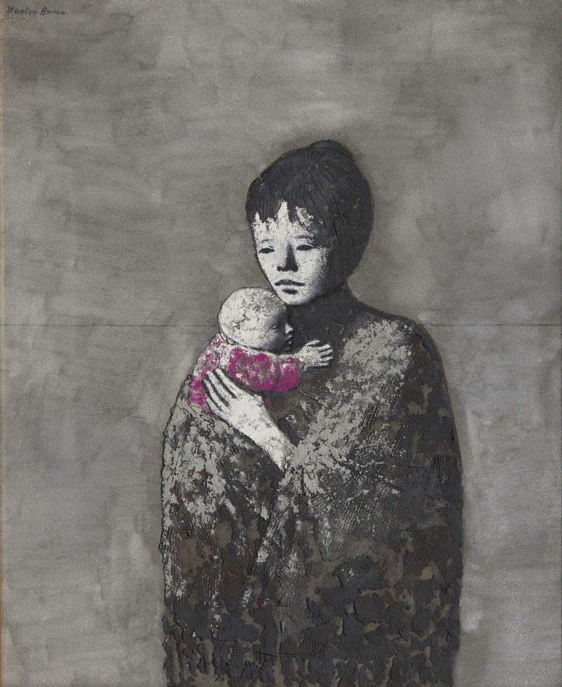 BUENO XAVIER (1915 - 1979) MATERNITA'. 1977. olio e tecnica mista su tela. Cm 60,00 x 73,00. firma