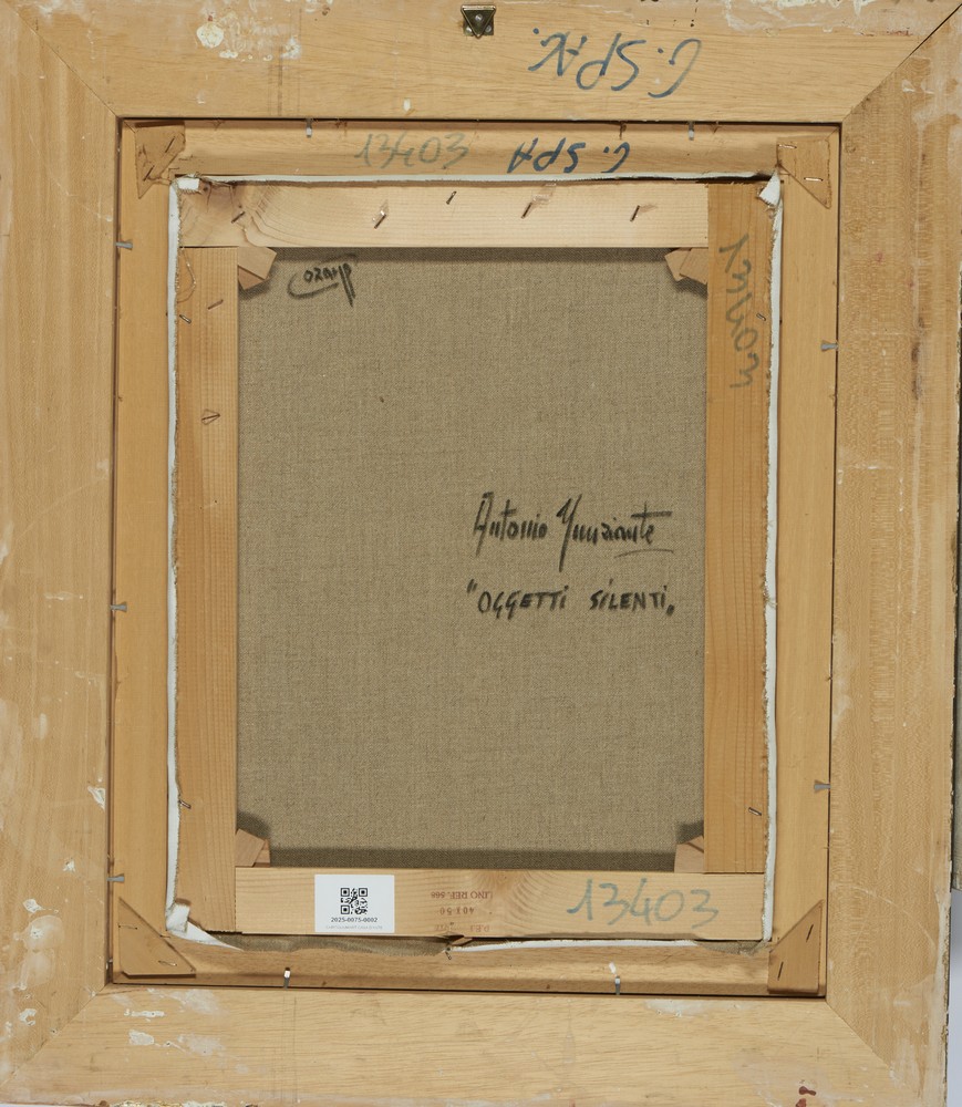 NUNZIANTE ANTONIO (n. 1956) OGGETTI SILENTI. Olio su tela. Cm 40,50 x 50,50. firma