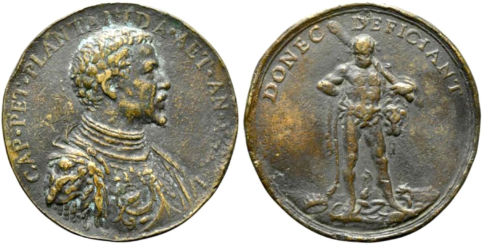 D/CAP. PET. PLANTANIDA. AET. AN. XXXVI. Busto corazzato a destra