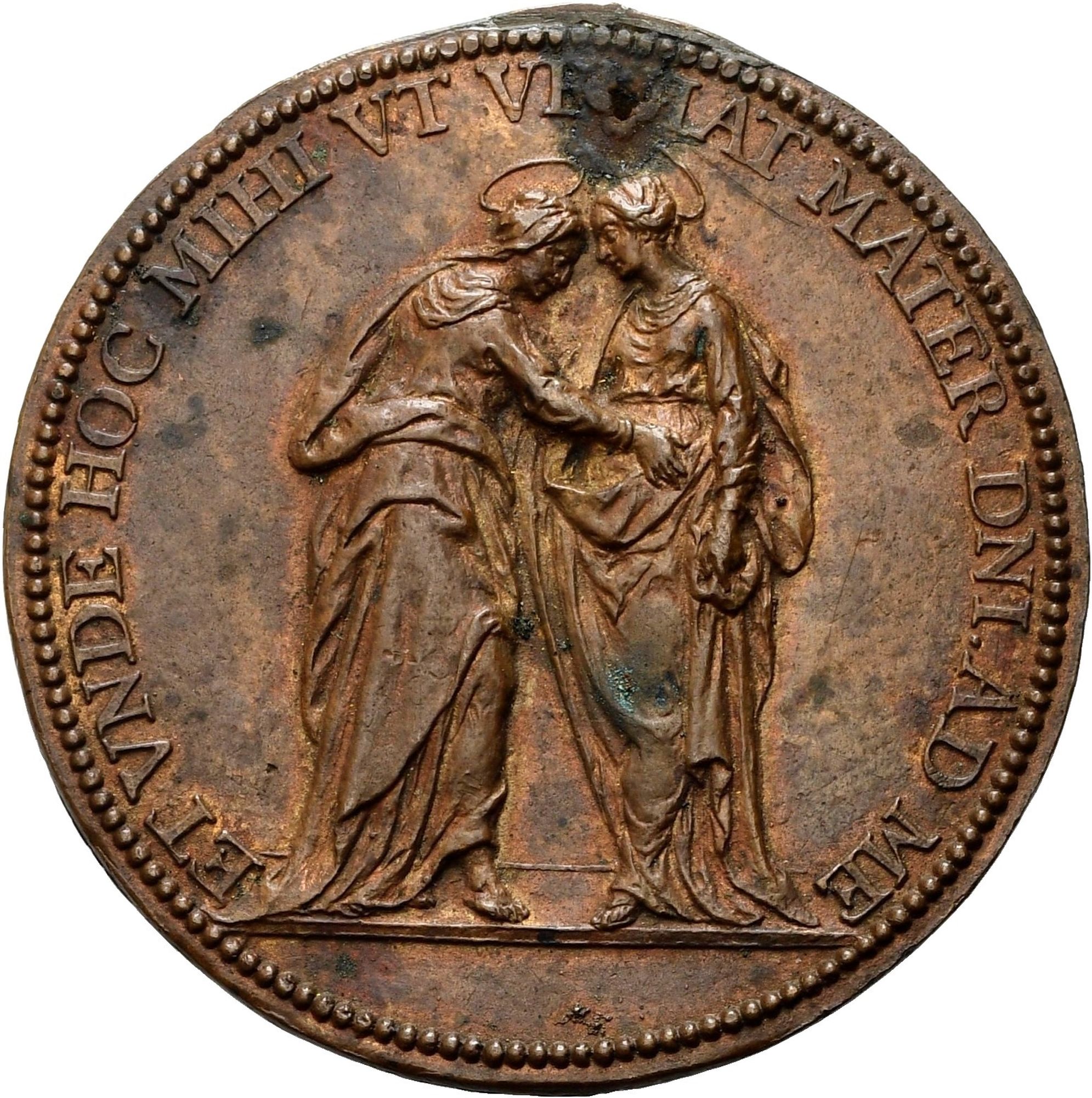 Medaglia in bronzo; mm 52,5. Tracce di appicagnolo divelto e piccolo foro in alto.