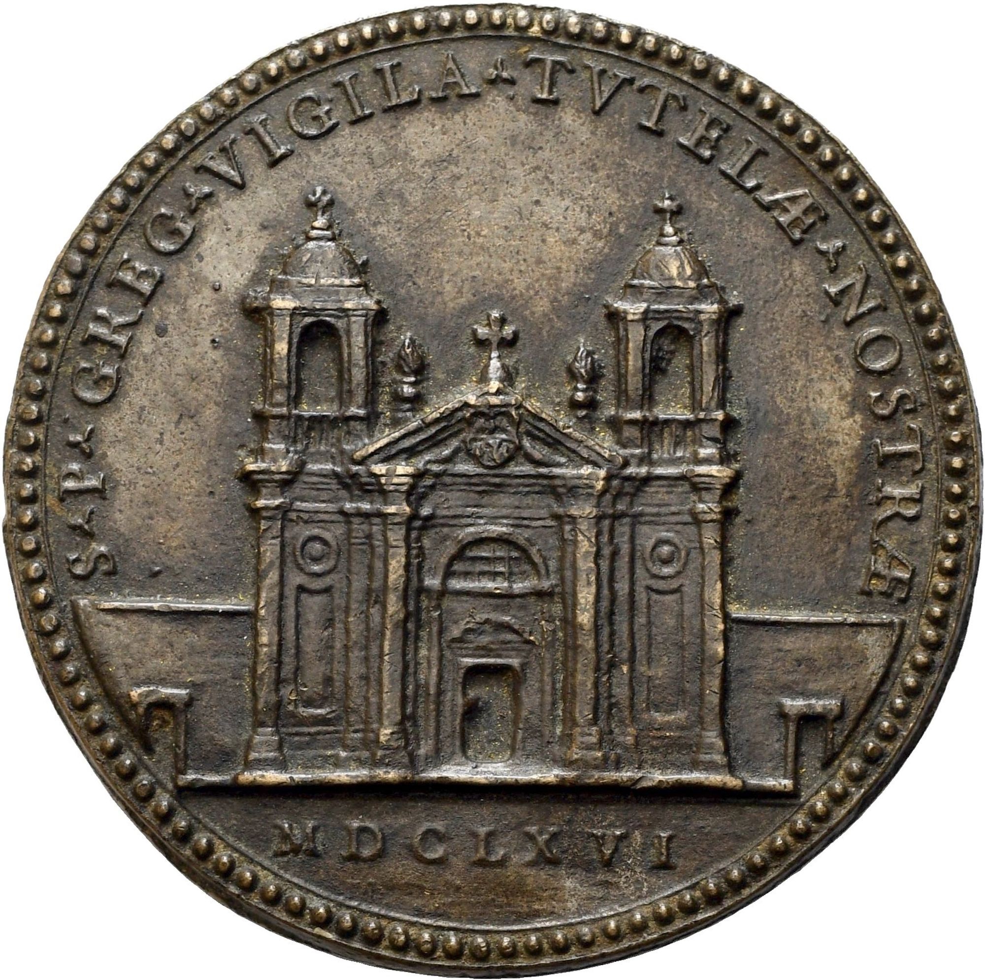 R\ S.P. GREG. VIGILA.TVTELAE. NOSTRAE in esergo MDCLXVI