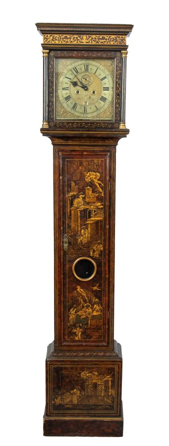 Lot 102 | Orologio a torre georgiano inglese a cineserie Giorgio I, 1690 circa Altezza x larghezza x profondità: 219 x 48 x 25 cm.
