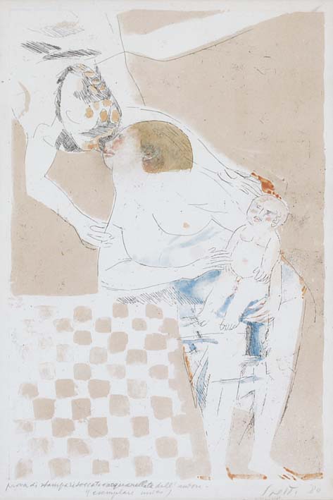 SAETTI BRUNO Bologna 1902 - Venezia 1984 Annunciazione 1980 litografia ritoccata a mano dall'Autore es. unico 34,5x23 cm firma e data in basso a destra