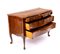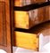 Altezza x larghezza x profondità: 92 x 137x 61 cm lastronato in noce, due cassetti più due affiancati sotto il piano, fronte e fianchi mossi.
