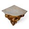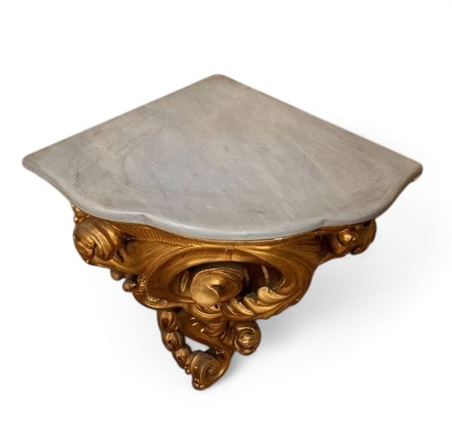 Altezza x larghezza x profondità: 80 x 64 x 45 cm piano in marmo, intagliate a volute, forme vegetali e volatili. Dorate in oro zecchino , città di Roma epoca settecento.