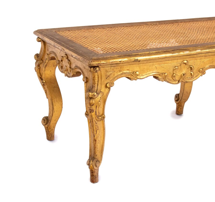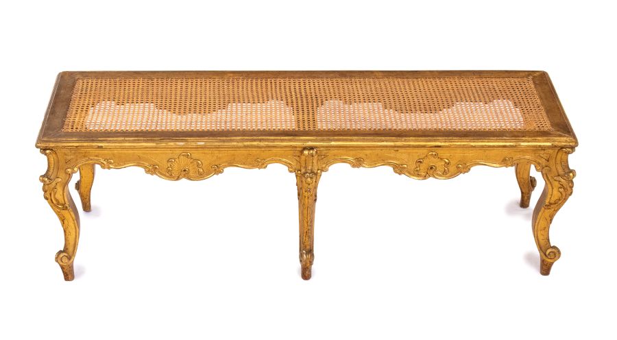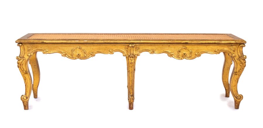 Lot 170 | Panchetto Luigi XVI italiano dorato Roma, XVIII secolo Altezza x lunghezza x profondità: 41 x 131 x 43 cm