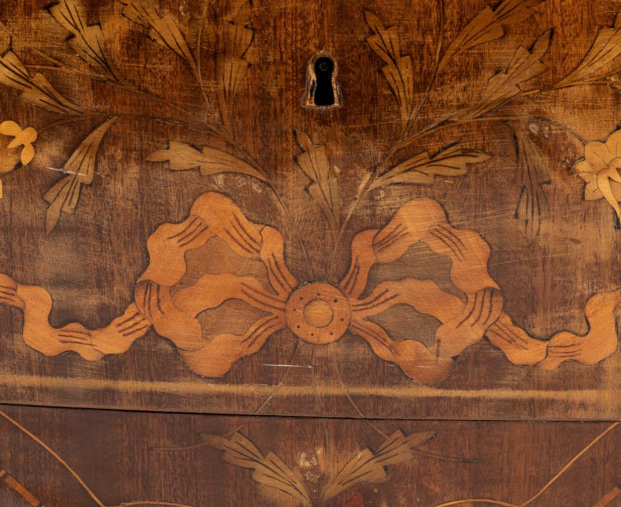 Comò olandese intarsiato 1880 Altezza x larghezza x profondità: 86 x 100 x 45 cm.