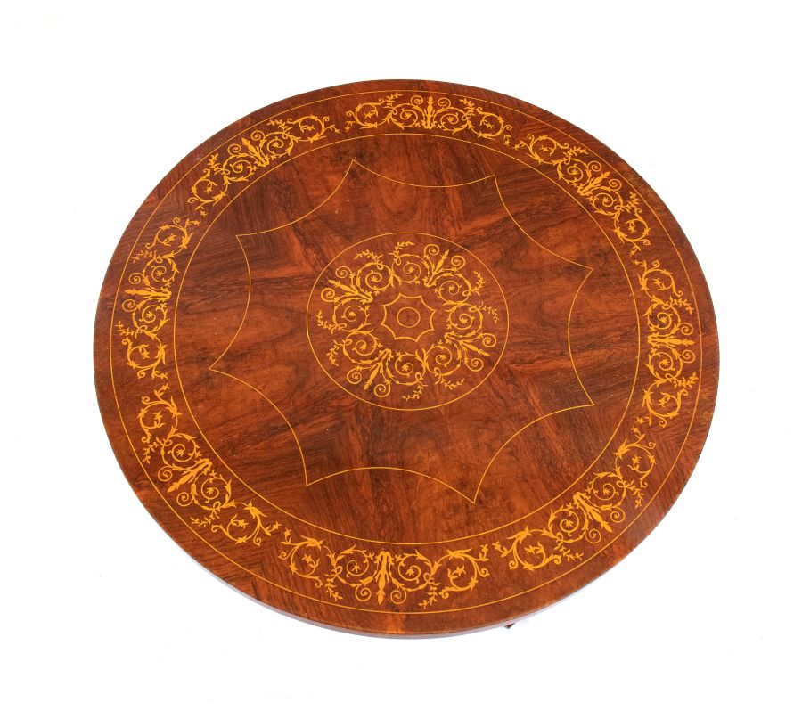 Tavolino italiano intarsiato in stile Carlo X XIX secolo Diametro 74 cm; Altezza 75 cm