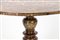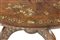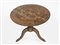 Altezza x diametro: 68 x 88 cm. di gusto orientale, a vela, in noce finemente decorato con piano circolare interamente intarsiato in madreperla con motivi floreali e vegetali, poggiante su una base a treppiede.