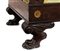 Altezza x larghezza x profondità: 84 x 177 x 64 cm. in legno di piuma di mogano, con applicazioni neoclassiche in bronzo dorato, da centro e sorretta da quattro gambe ferine.