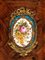 Altezza x larghezza x profondità: 91 x 67 x 47 cm. con applicazioni in bronzo dorato e placche di porcellana dipinte, piano in marmo bianco Carrara.