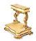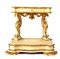 Altezza x larghezza x profondità: 87 x 100 x 70 cm laccato e con parti dorate a foglia , piano con cassetto sorretto da due colonne scolpite e poggianti su basamento rettangolare mosso, che cela un vano per i libri.