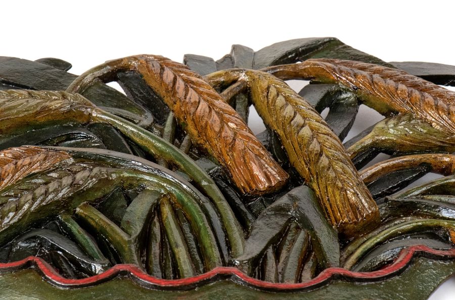 Altezza x larghezza x profondità: 42 x 55 x 3 cm finemente intagliati e decorati in policromia.
