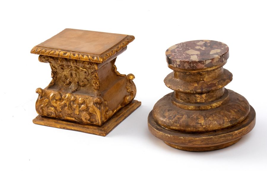 Lot 265 | Due capitelli dorati, Luigi XVI Italia centrale, XVIII secolo Altezza x larghezza x profondità: 23 x 25 x 25 cm; 2 1x 25 x 25 cm.