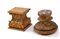 Altezza x larghezza x profondità: 23 x 25 x 25 cm; 2 1x 25 x 25 cm. uno di sezione quadrata intagliato a motivi vegetali, l'altro di forma tondeggiante con piccolo marmo tondo sul piano.