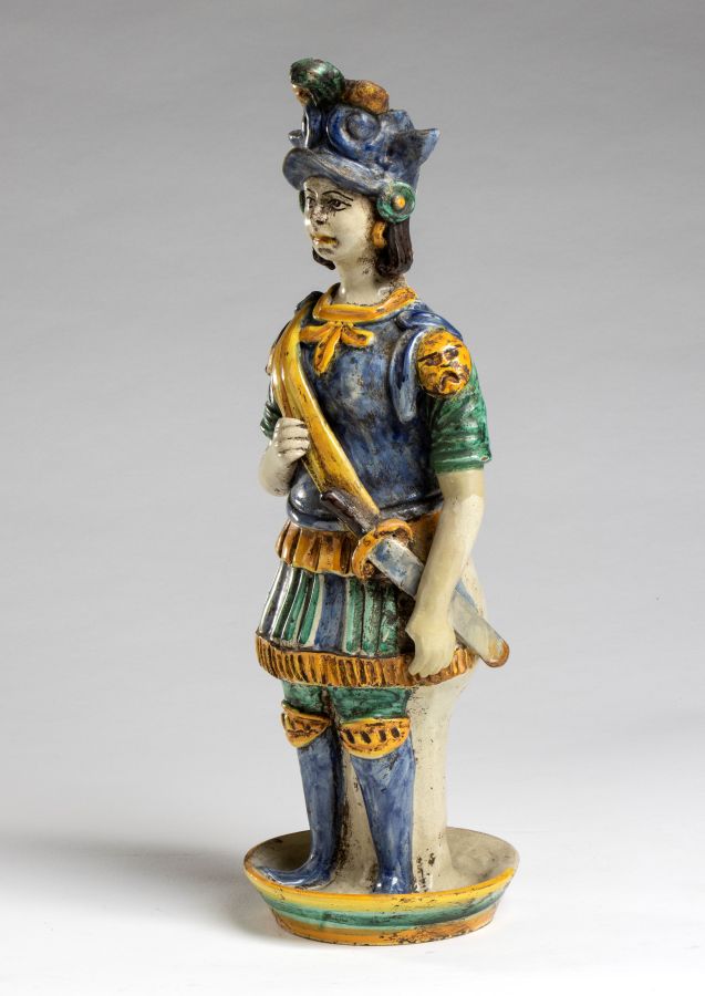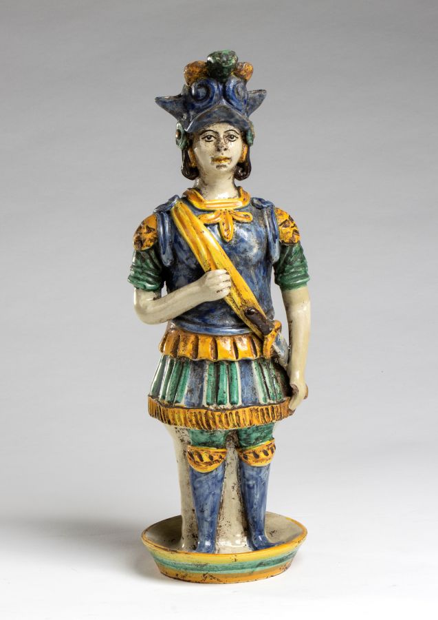 Altezza x larghezza x profondità: 37 x 12 x 12 cm lumiere antropomorfa raffigurante guerriero, dipinta a mano.