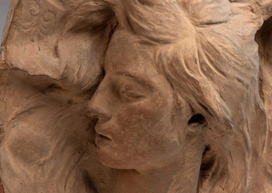 ARRIGO MINERBI Ferrara, 1881 - Padova, 1960 (attribuito a) Terracotta con volto di saffo Italia, XX secolo Altezza x lunghezza x profondità: 51 x 48 x 15 cm