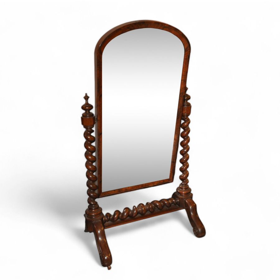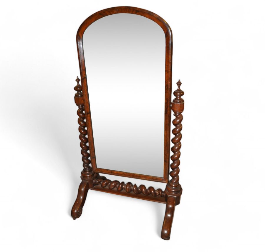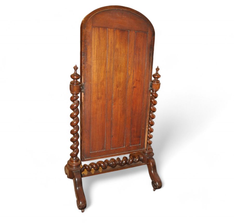con basamento e colonne a torciglione, struttura in mogano impiallacciata in palissandro. Piedi a riccio con ruote in ceramica.
