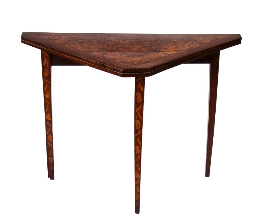 Tavolo da gioco olandese intarsiato XIX secolo Altezza x larghezza x profondità: 75 x 105 x 52 cm