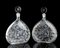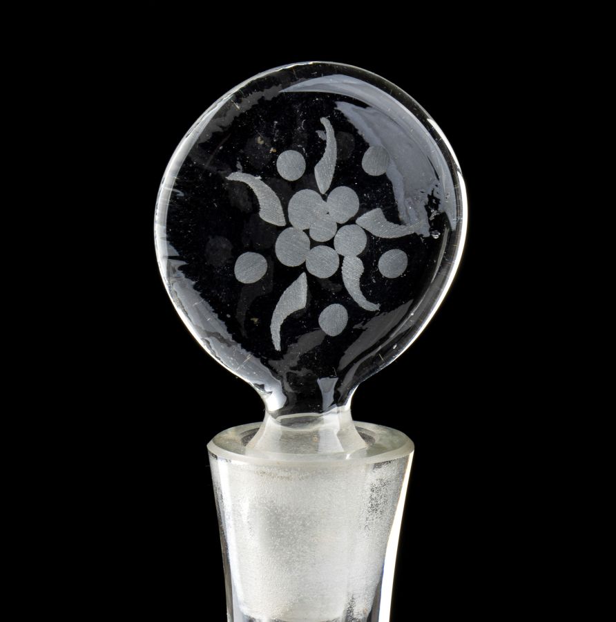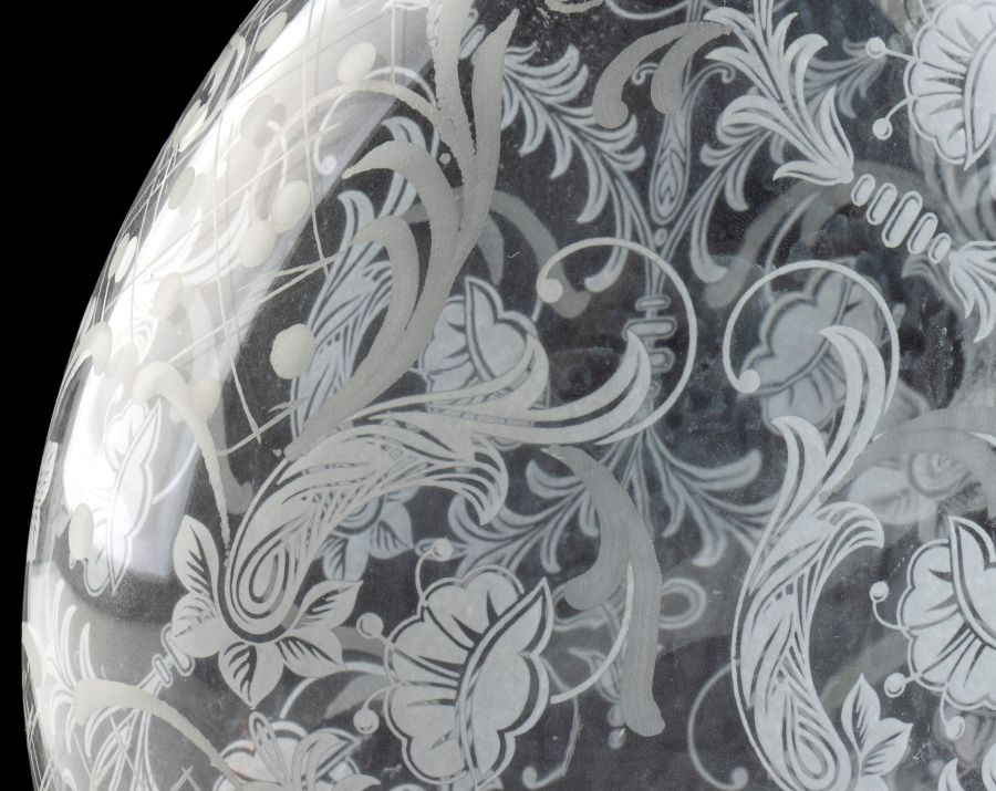 Altezza x larghezza: 31 x 22 cm. Peso complessivo: 1840 gr. Incisi con decorazioni di volute e fiori. Con etichetta blu e argento "Gallo" di Murano, con il codice di fabbrica "AC".