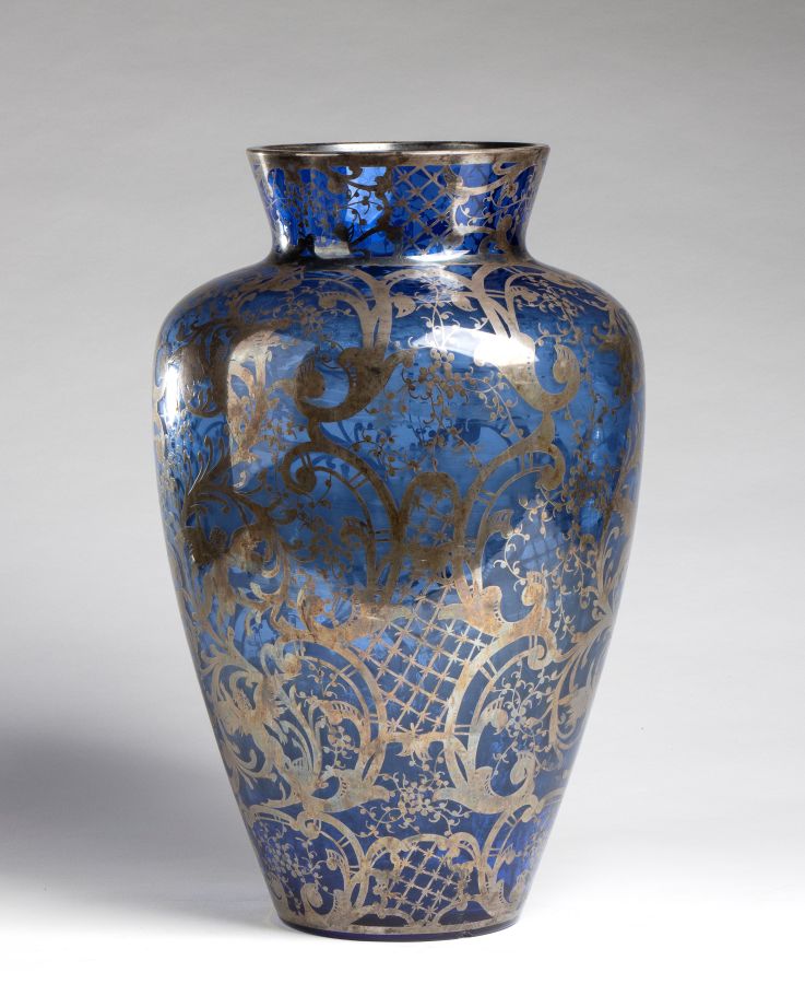 Vaso in vetro blu e argento USA, XX secolo