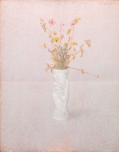 Antonio Bueno (Berlino 1918 - Fiesole 1984) VASO CON FIORI olio su faesite, cm 50x40, firmato eseguito nel 1961 L’opera è accompagnata da certificato di autenticità dell’Archivio Fotografico Generale delle Opere di Antonio Bueno con il n. ARCH/n52