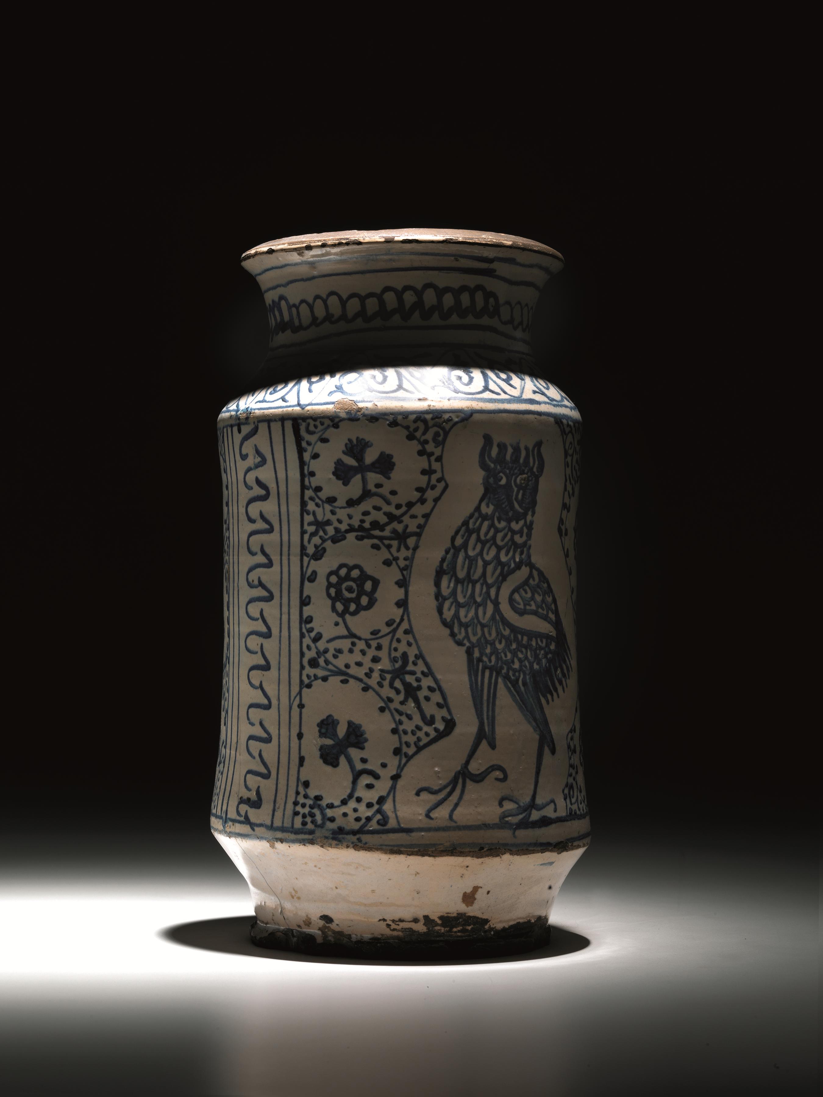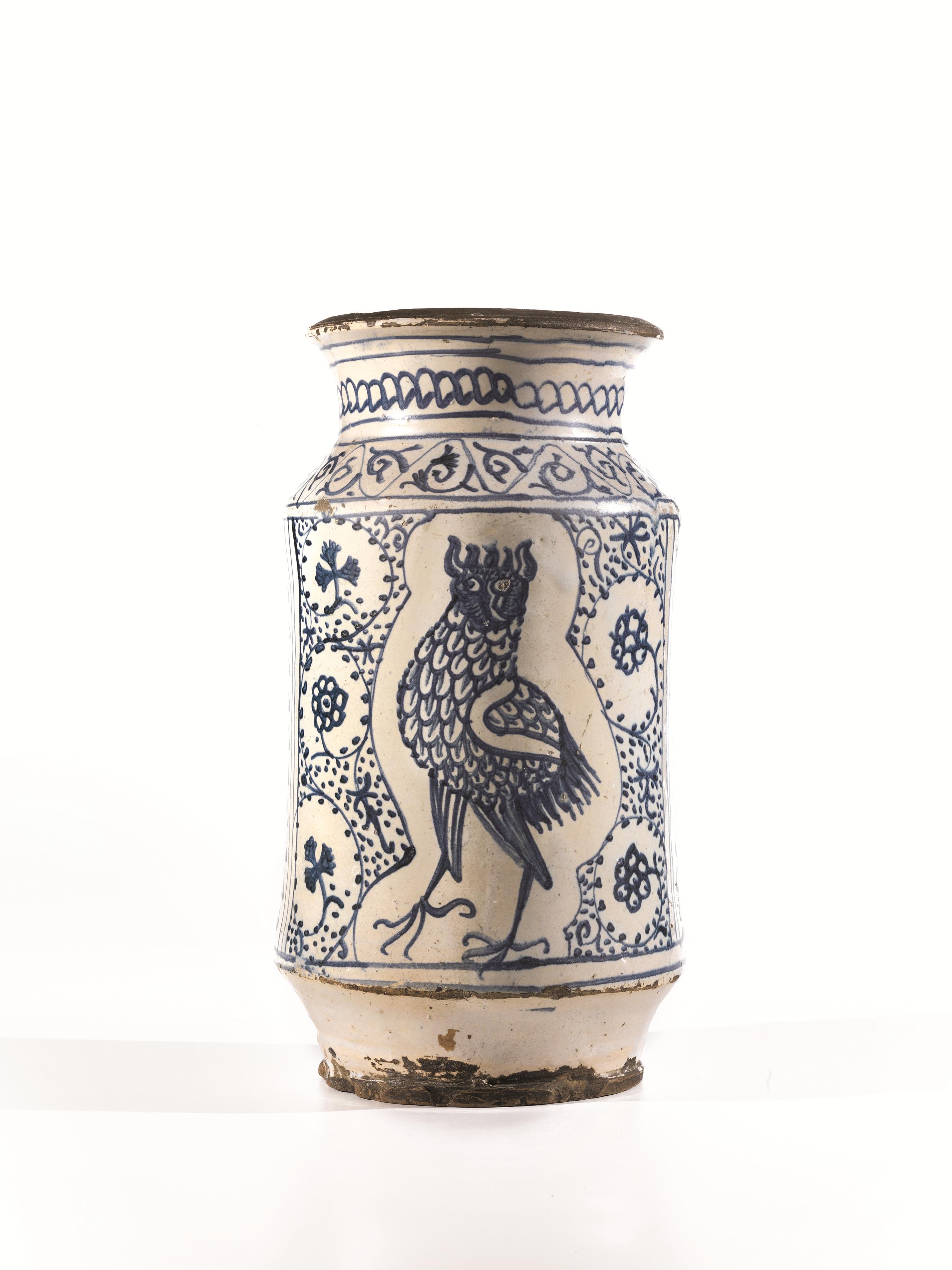 ALBARELLOMontelupo, 1420-1450 Maiolica decorata in monocromia blu di...
