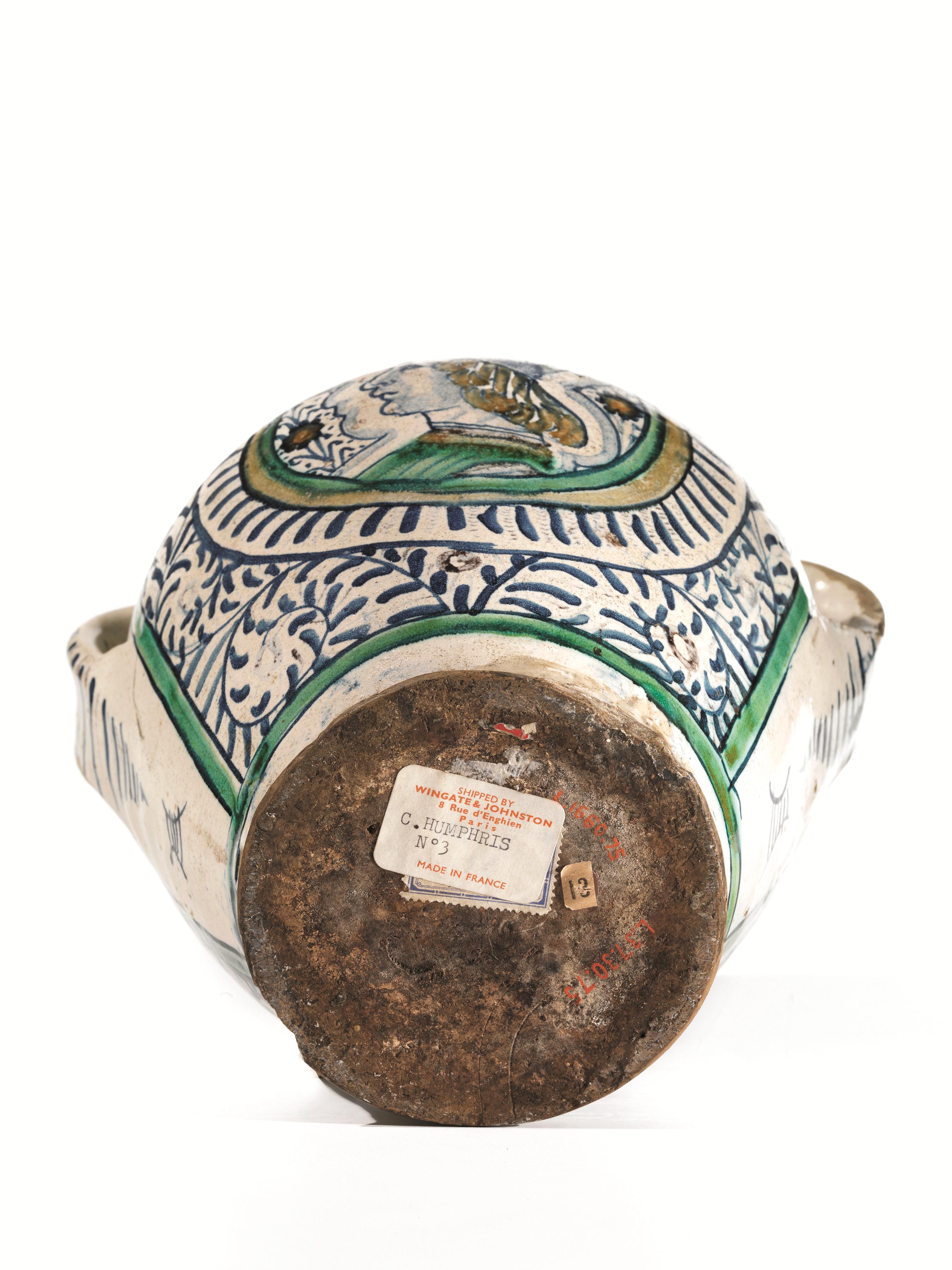 Sotto la base etichetta di spedizione da Parigi stampata con dattiloscritto “C. HUMPHRIS n. 3”, che copre un’altra etichetta. Sotto la base numeri rossi di collezione “L.37.30.75” e “L.1660.75